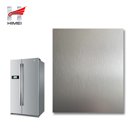 家電用覆膜鋼板,就是鋼板的基材上面覆了一層PET膜/PVC膜,然后通過覆合貼覆而成,主要應用在各類家電外殼裝飾上,例如冰箱、洗衣機、電飯煲等外殼部件。覆膜是一種物理工藝,一層膜一層鋼板經過高溫高壓壓合而成。