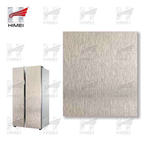 家電用覆膜鋼板,就是鋼板的基材上面覆了一層PET膜/PVC膜,然后通過覆合貼覆而成,主要應用在各類家電外殼裝飾上,例如冰箱、洗衣機、電飯煲等外殼部件。覆膜是一種物理工藝,一層膜一層鋼板經過高溫高壓壓合而成。